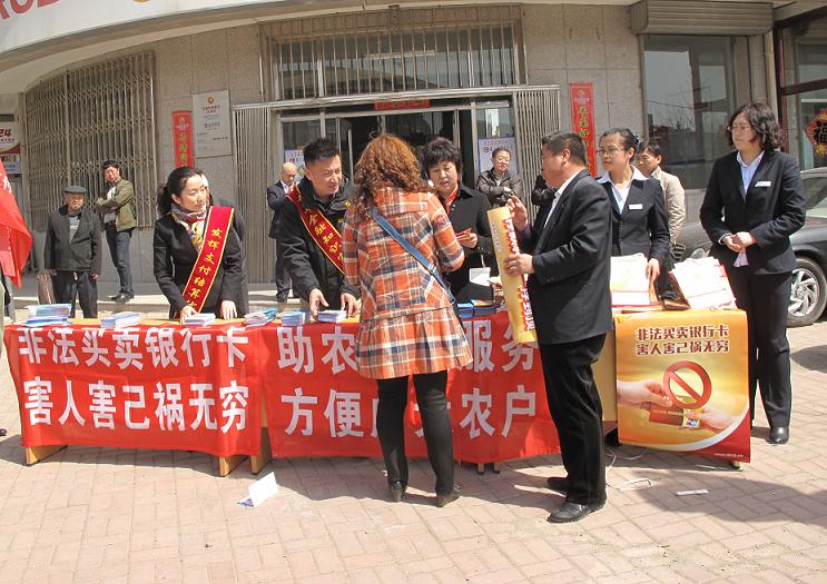 为引导社会公众特别是农民群众合法合规使用银行卡,提高风险防范意识,普及非现金支付工具在农村地区的应用,4月16日,人民银行大连市中支与人民银行瓦房店市支行在瓦房店市开展整治银行卡网上非法买卖及银行卡助农取款服务宣传活动。